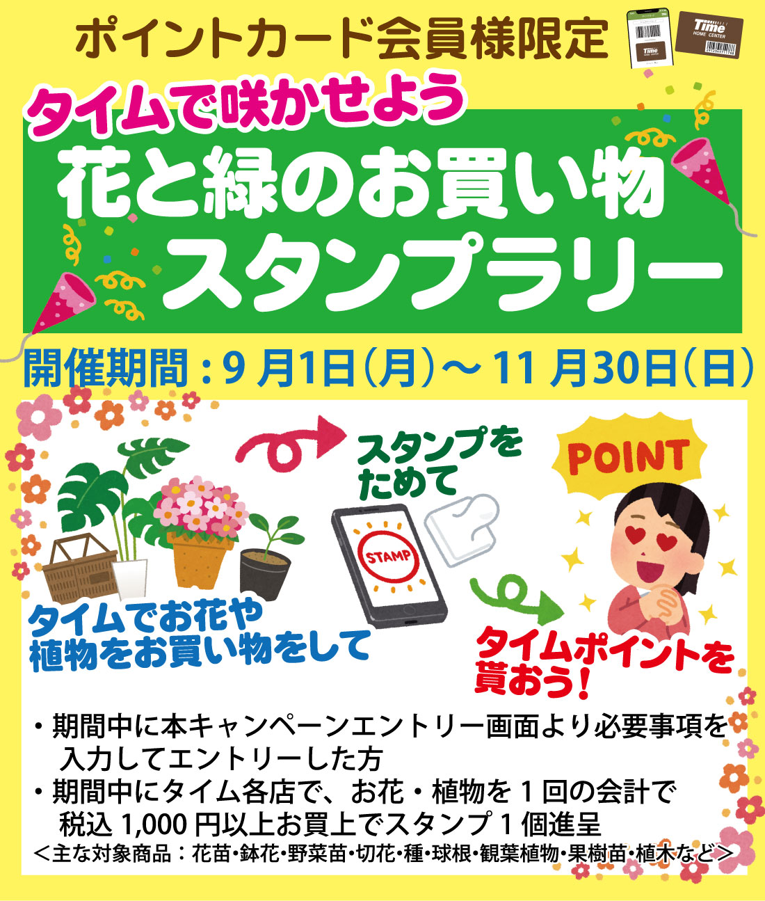 ※スタンプが3つ貯まった方には後日タイムポイント200ポイントを進呈。